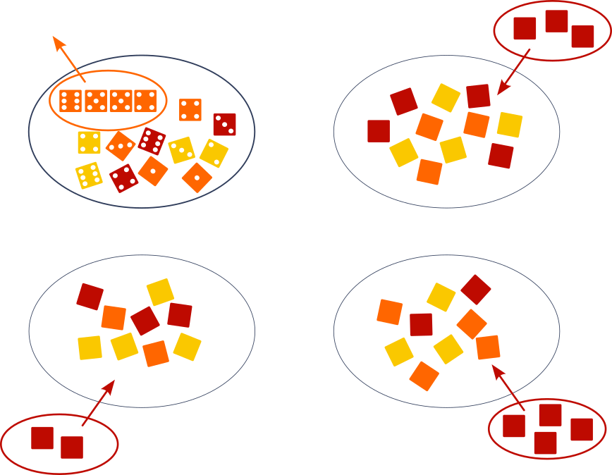 As soon as all players are familiar with Dice Party, they should play several game rounds to identify the real Party Animal.